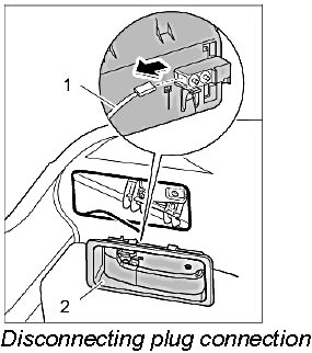 3. Disconnect electric plug connection -1- for microswitch and remove release handle -2-.