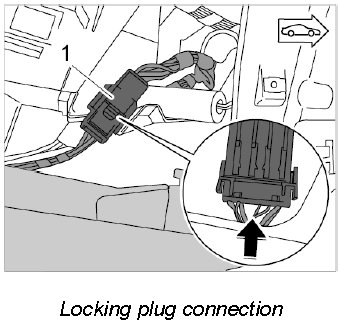 Locking wire harness plug connection for centre console
