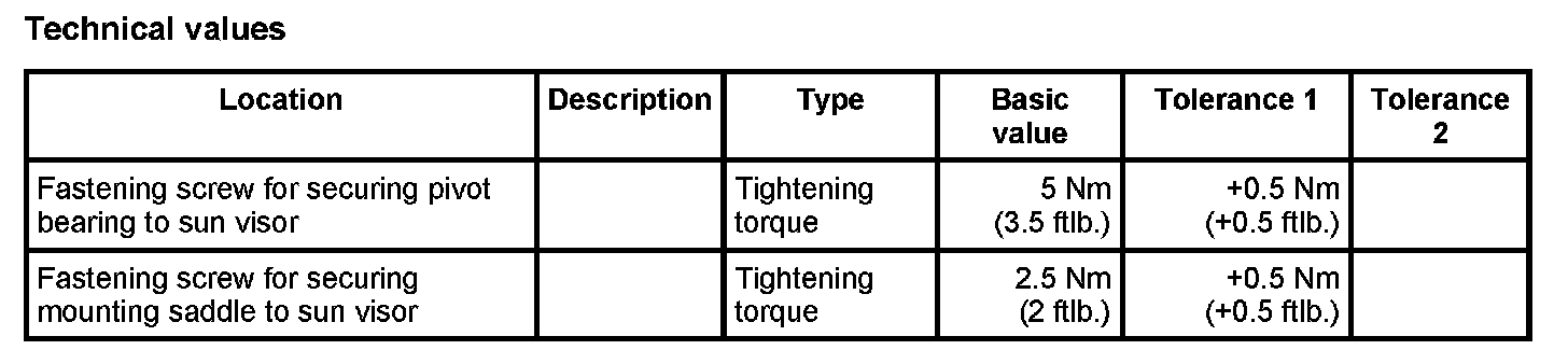 6. Position mounting saddle -3- at the top on the roof liner -arrow C- and secure using the fastening screw -2-. Tightening torque: 2.5 Nm (2 ftlb.)+0.5 Nm (+0.5 ftlb.)