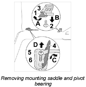 4. Unscrew fastening screw -5- and remove pivot bearing -6- -arrow D-.