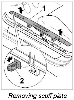 3. Lift scuff plate using a plastic wedge and pull off upwards and remove.