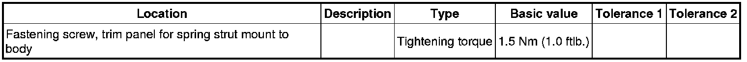 3. Align gap of trim panel for spring strut mount -2- to shelf and tighten fastening screws -1-. => Tightening torque: 1.5 Nm (1.0 ftlb.)