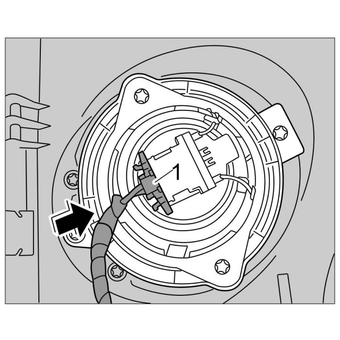 1. Push in connector for loudspeaker -1- until the locking tabs engage.