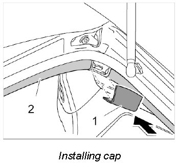 4. Clip cap -1- into C-pillar trim panel -2-.