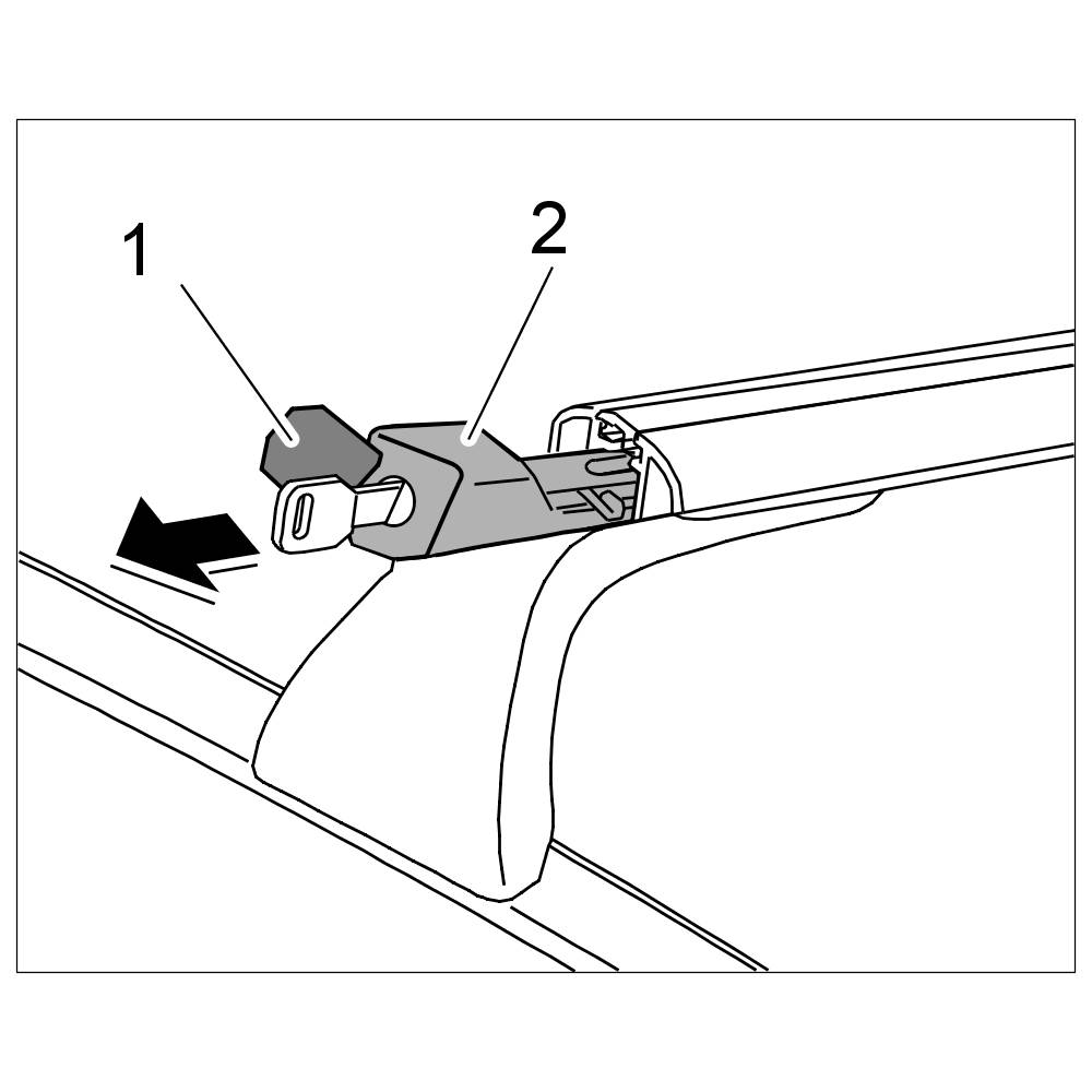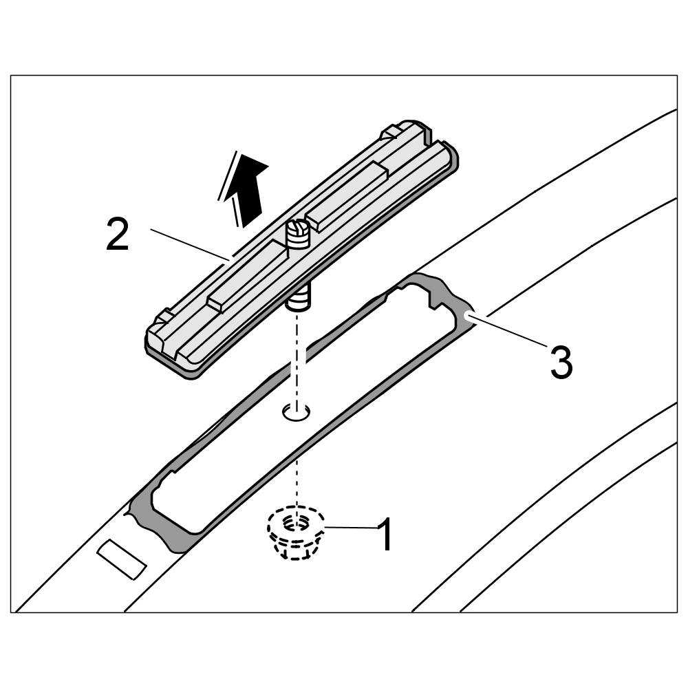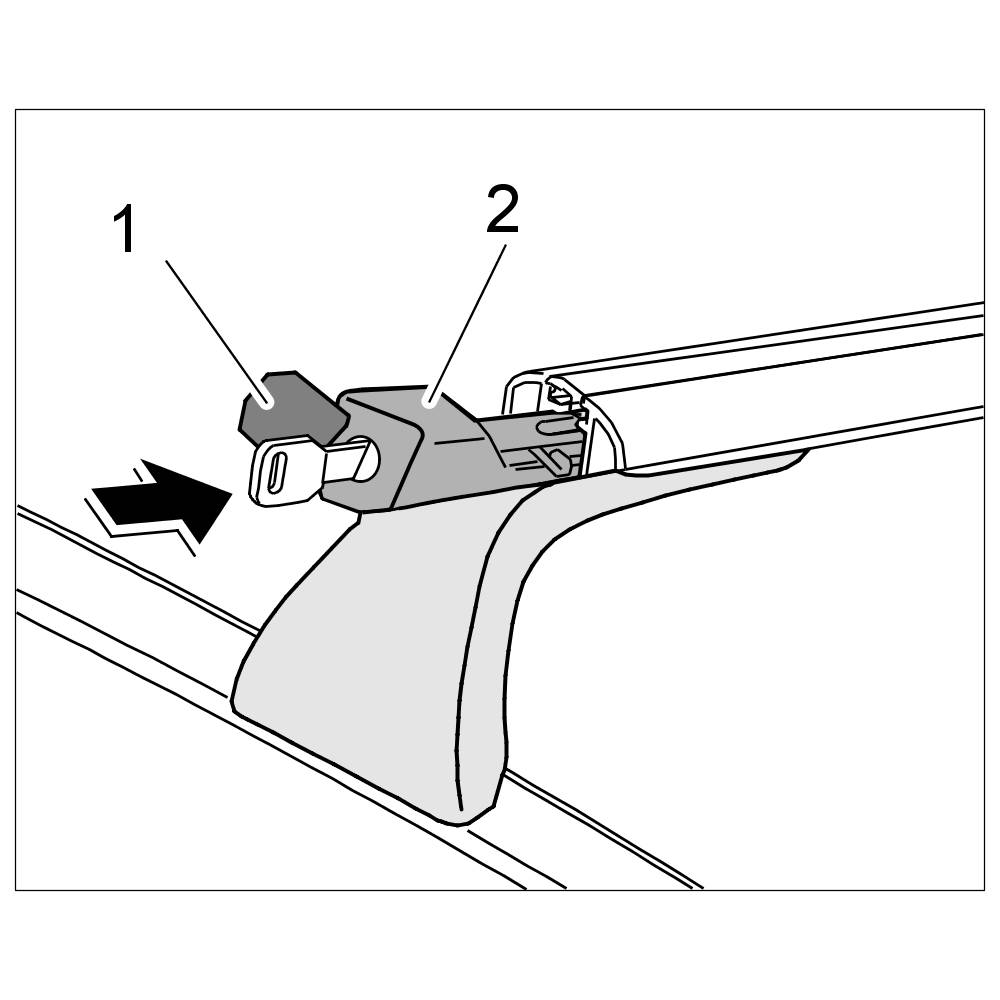 2. Position base plate -2- of Roof Transport System in and parallel to the roof channel. Screw in fastening nut -1- from inside and tighten. => Tightening torque: 23 Nm (17 ftlb.)