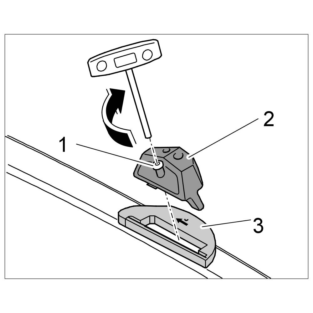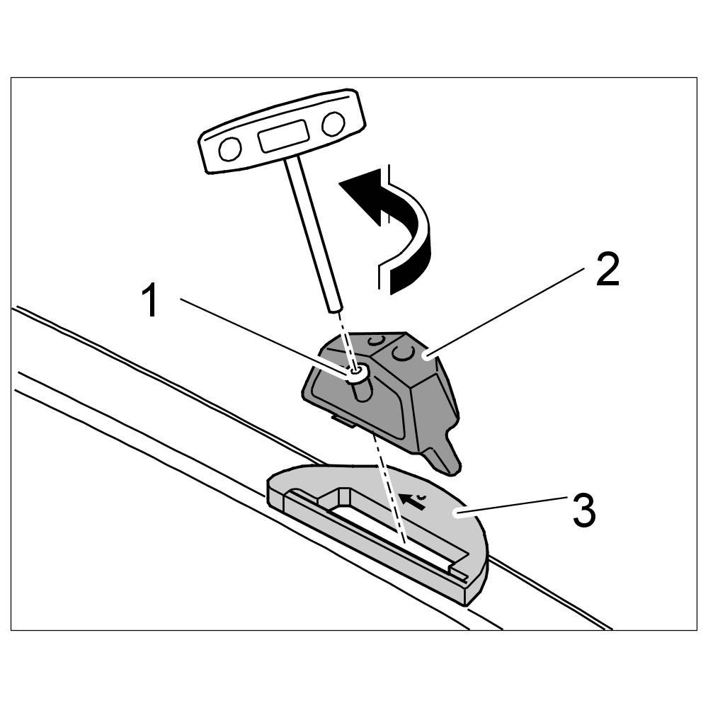 4. Position adapter -2- , align with the base and secure to vehicle with the fastening screw -1-.