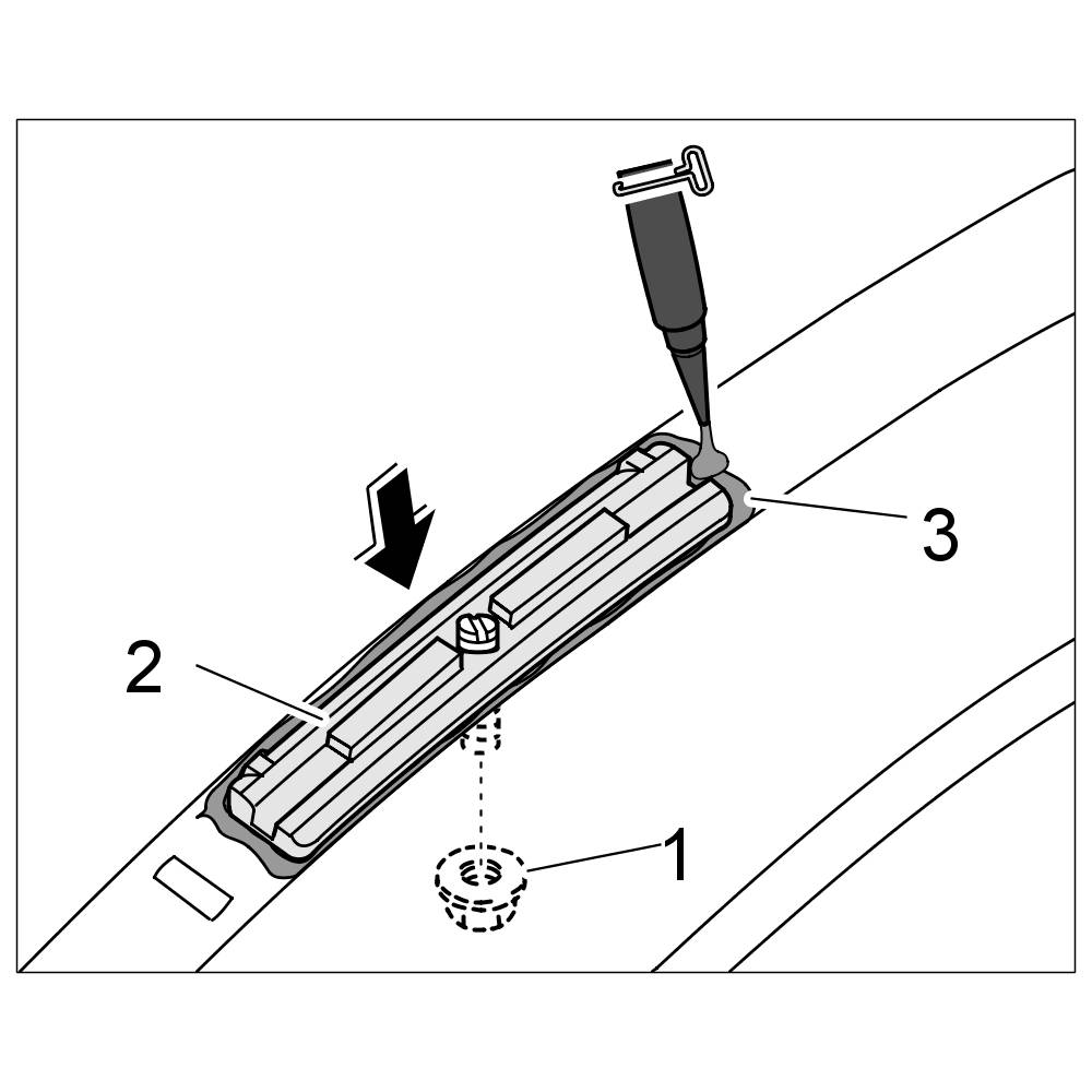 1. Remove roof joint cover strip. -> 663619 Removing and installing roof joint cover strip - section on "Removing" 663619 Removing and installing roof joint strip