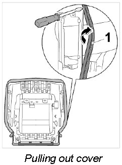 2. Slightly loosen cover piping -1- with a screwdriver and pull out all around by hand.