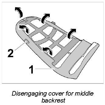 1. Disengage cover for middle backrest -1- out of the plastic frame -2- all the way round.