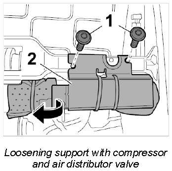 2. Set support -2- with connected motor and air cushion control valve aside.