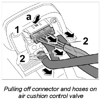 4. Pull off the three hoses -2- from the air cushion control valve.