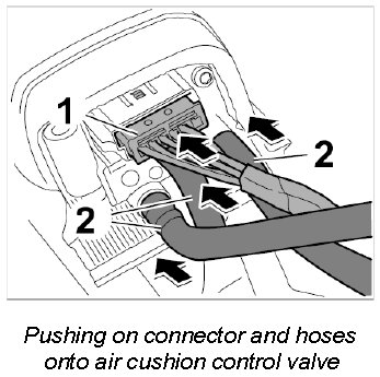 2. Push on the three hoses -2- onto the air cushion control valve.
