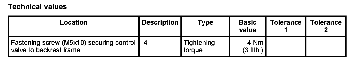 1. Push control valve for lumbar support adjustment -3- (with the clip -5-) onto the backrest frame -arrow A- and screw down with the fastening screw -4-. Tightening torque: 4 Nm (3 ftlb.)