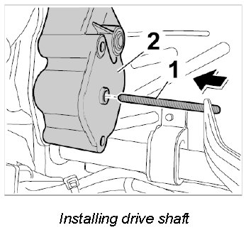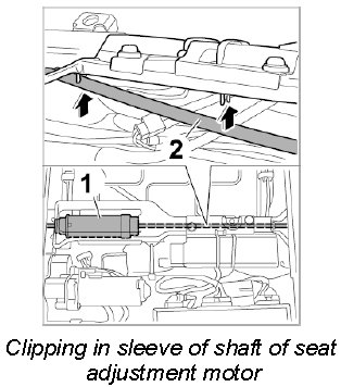 8. Clip in sleeve of long drive shaft -2- of seat adjustment motor -1- on the support.