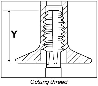 Cut thread into the chassis bushing using a cutting tool D up to dimension Y. Clean the thread on the chassis bushing (blow it out).