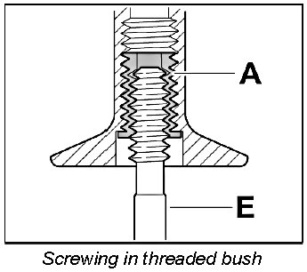 Screw threaded bush A in fully (note bush length classification) using the screw-in tool E.