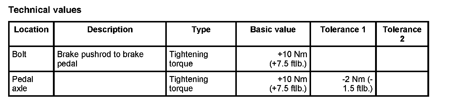 The brake pedal can only be removed when the clutch pedal has been removed.