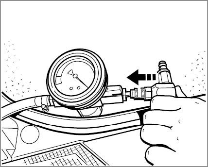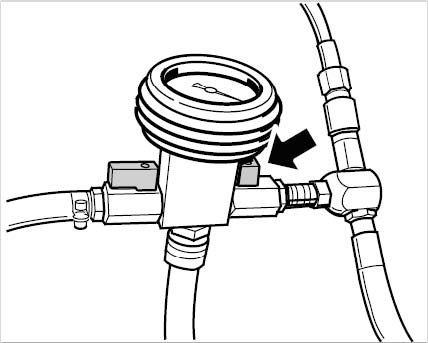 9. Open both shutoff valves on the vacuum pressure gauge until the transparent filler hose has completely filled with coolant.