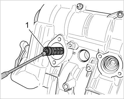 4. If the solenoid hydraulic valve for camshaft adjustment is removed, the oil strainer -1- must be checked for damage and contamination, and replaced if necessary.