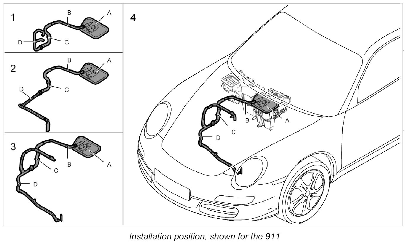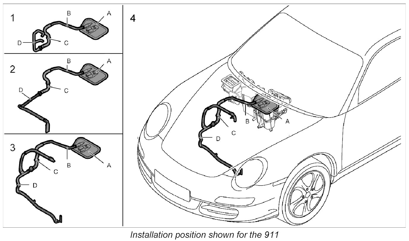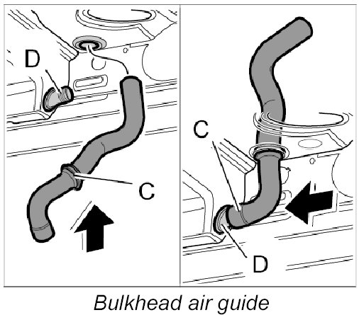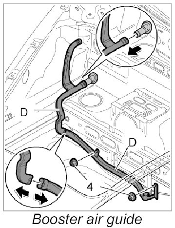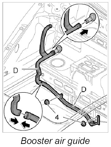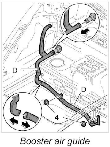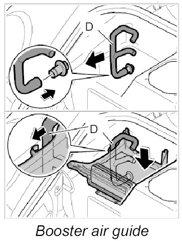 4. Route booster air guide -D- around the body and insert into the upper air guide.