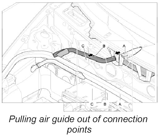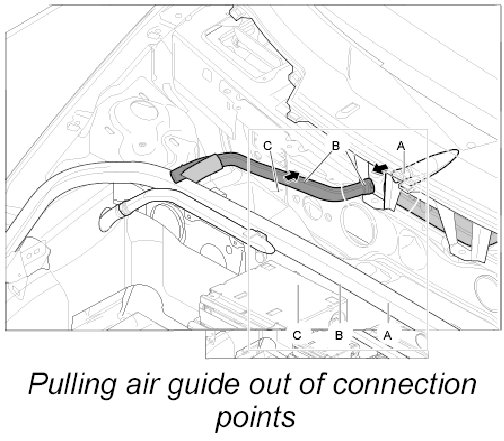 2. Pull air guide -B- out of air guide -A- and then out of air guide -C-.