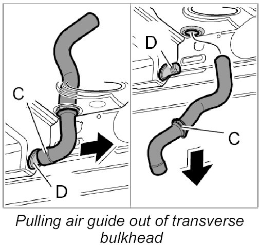 1. Pull air guide -C- out of connection -D-.
