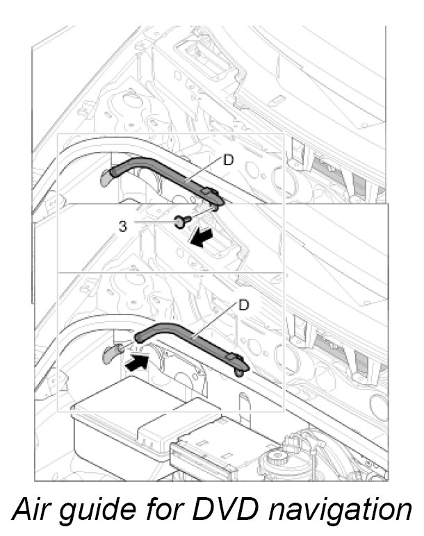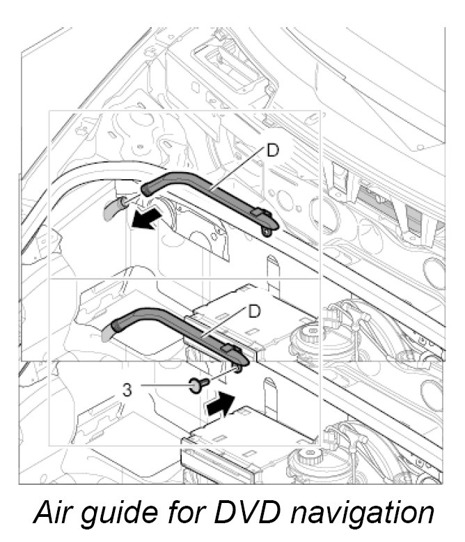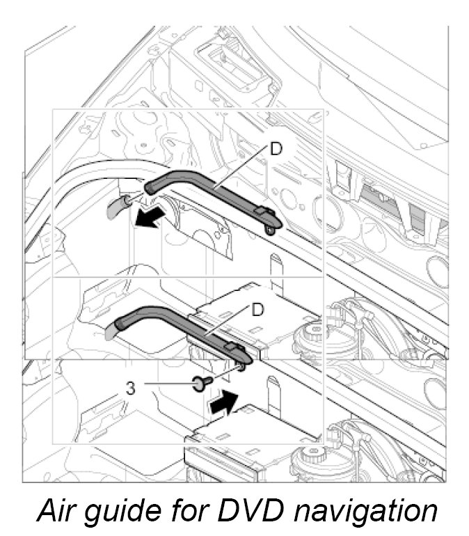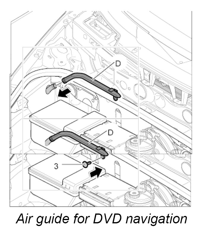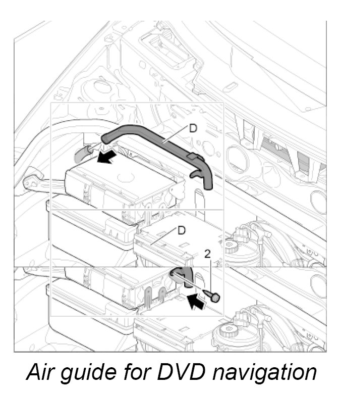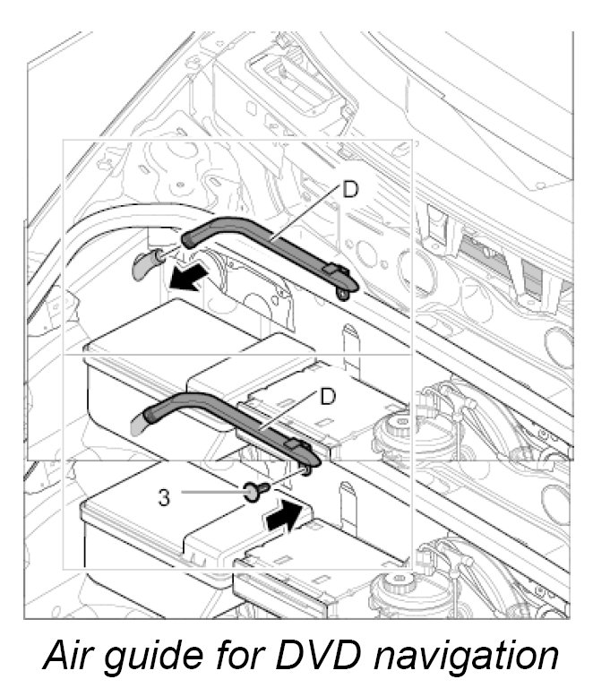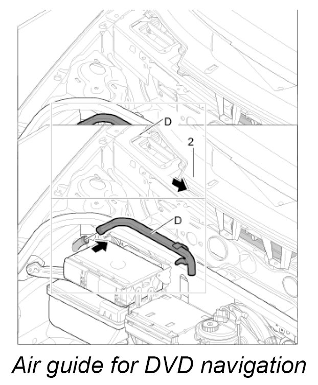 Air guide D, luggage compartment air guide for DVD navigation with carbon canister and with CD autochanger