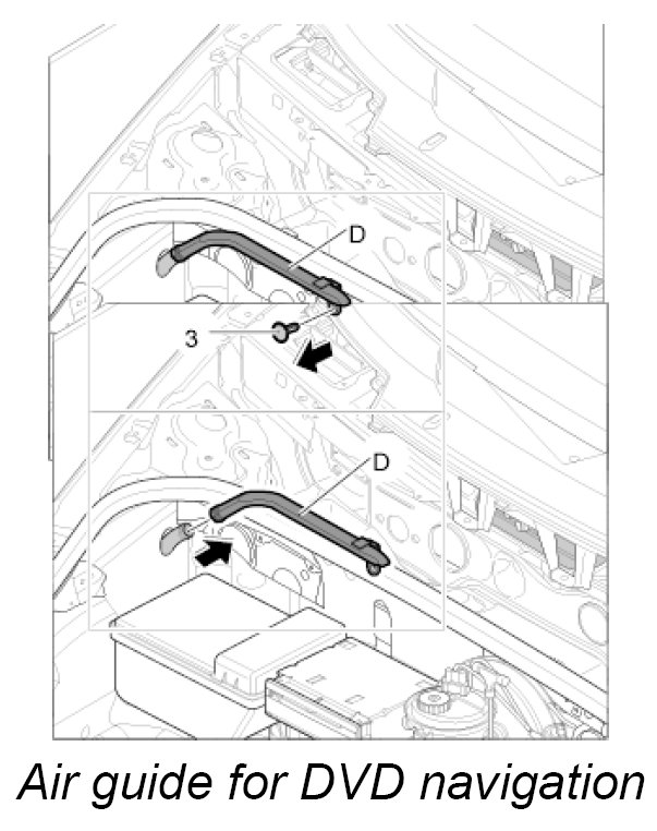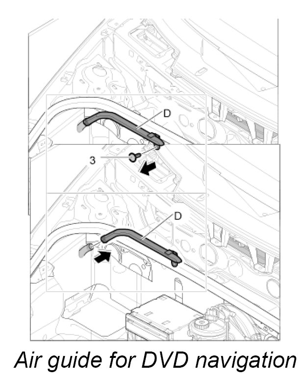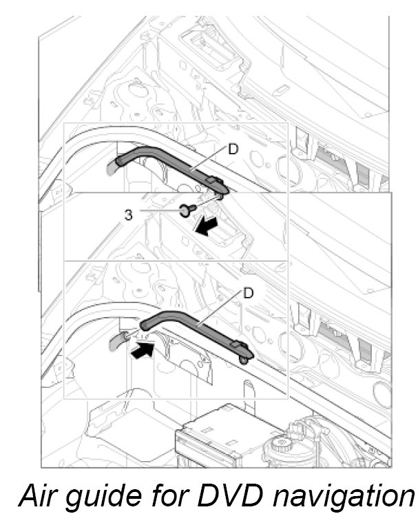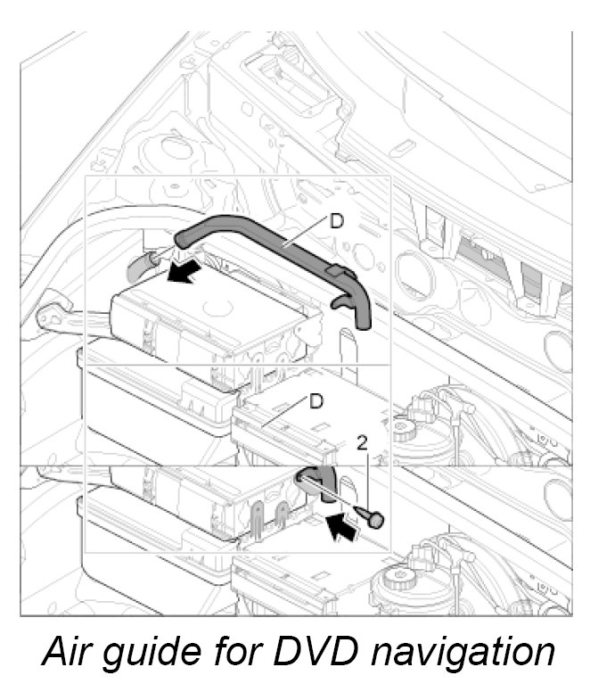 12. Screw down air guide -D- to the CD autochanger support with the fastening screw -2-.