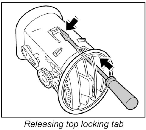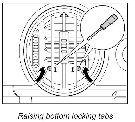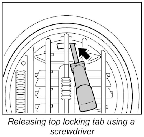 - The two bottom locking tabs can be raised using a small screwdriver.