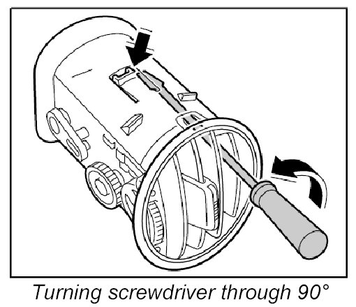 3. Turn the screwdriver to the left through 90 degrees so that the locking tab is pushed down.