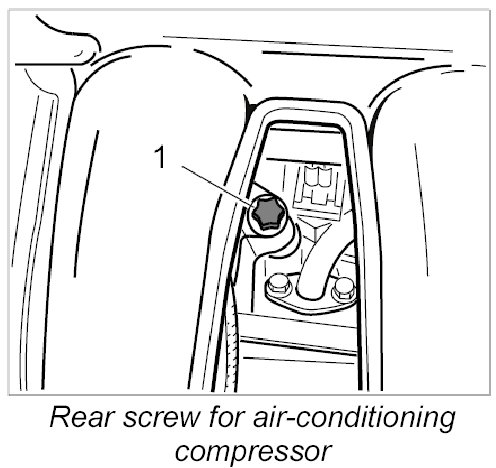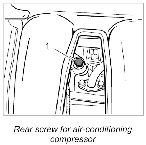 3. Unscrew rear Torx screw for air-conditioning compressor (M8 x 120) -1- between the pipes of the intake system.