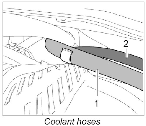 6. Clip in refrigerant hoses -1- and -2- between body and intake-air distributor.