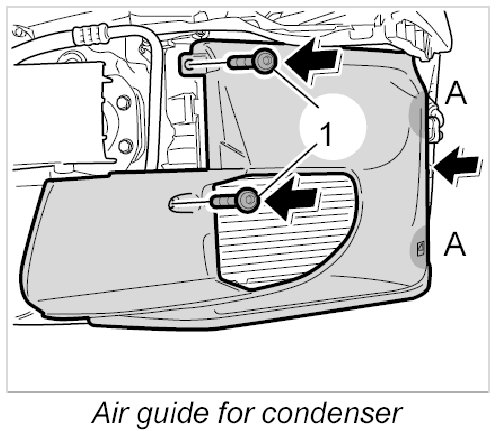 2. Pull the air guide forward and disengage it at the condenser -A-.