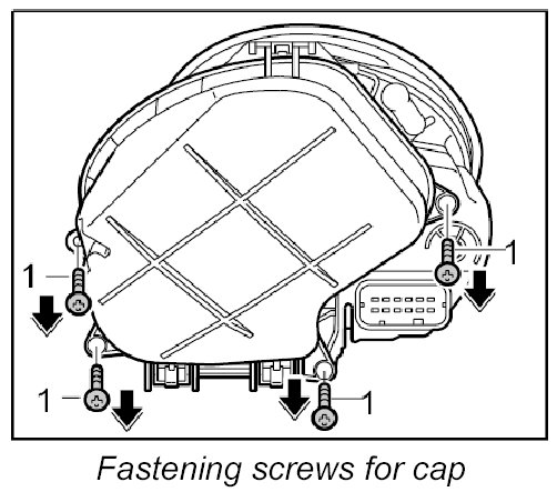 1. Unscrew four fastening screws -1- from the cap.
