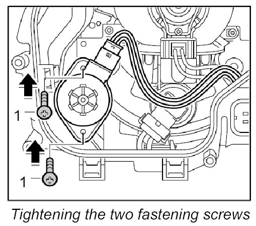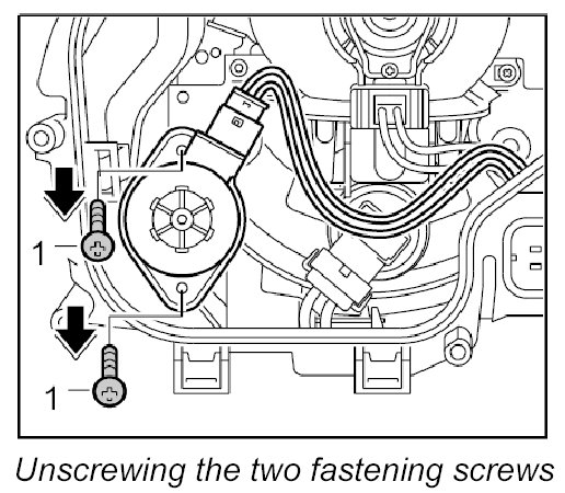 1. Unscrew the two fastening screws -1- for the servo motor.