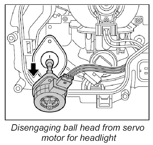 2. Engage servo motor in the actuator for the main headlight and push servo motor upwards.