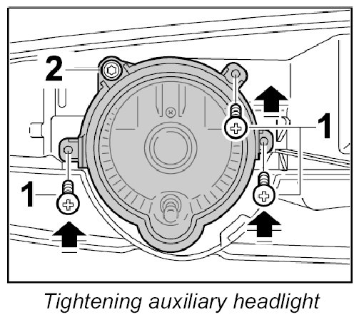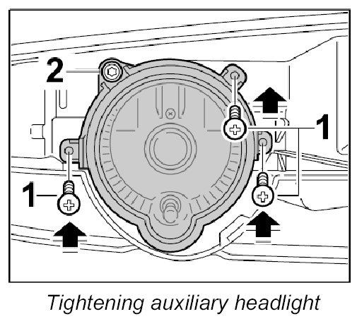 - On installing a new auxiliary headlight, the adjustment must be checked with a headlight adjustment unit and adjusted if necessary.