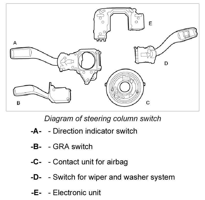 3. Turn the steering column switch round and remove the electronic unit -E-.