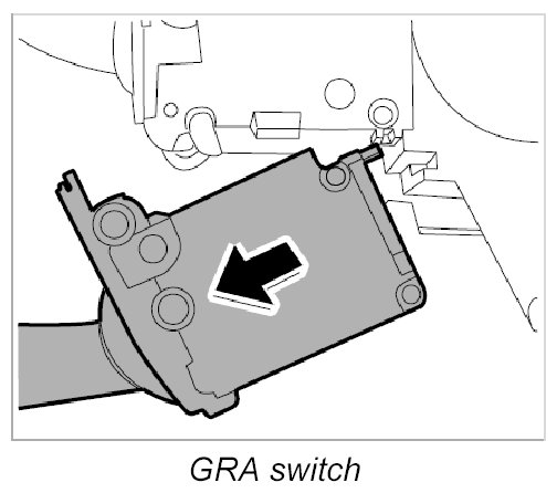 4. Pull the GRA switch -B- downward and disengage.