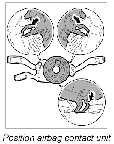 - To position the airbag contact unit in the central position, press the locking element and turn the rotor carefully to the left as far as it will go.
