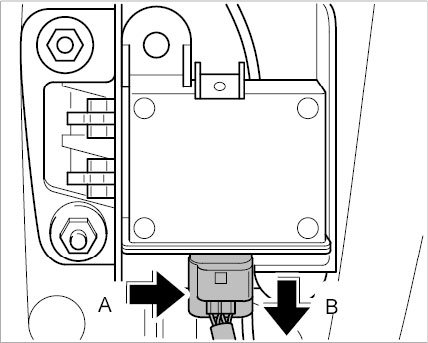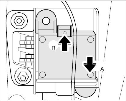 2.2. Remove transmitter (trigger) for TPM from the holder -arrow B-.