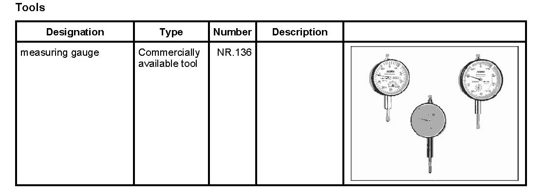 ^ Use a tire measuring gauge, e.g. measuring gauge NR.136 to check radial and lateral runout values on wheels without flat spots. Values of less than 1.0 mm are desirable - around 0.5 mm would be better.