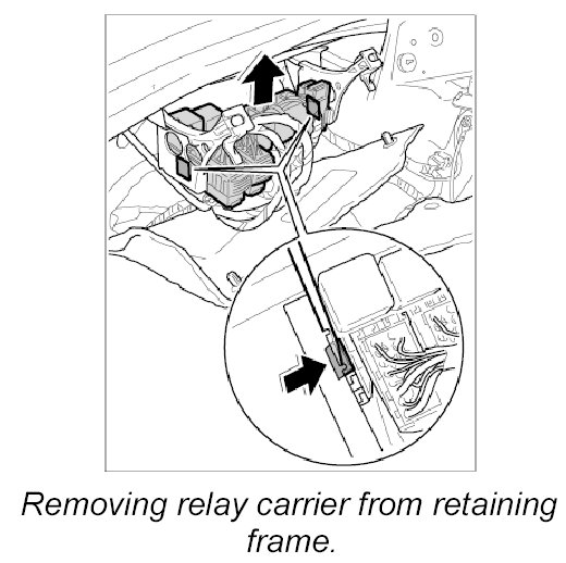 1. Release relay carrier at retaining frame on both left and right side and remove the relay carrier from the bracket.