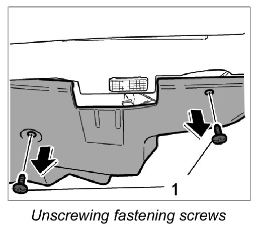 4. Unscrew both plastic screws -1- for the cover in the passenger's footwell and remove the cover downwards.