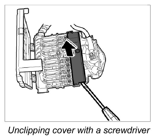 7. Unclip the cover for the fuse elements with a screwdriver.