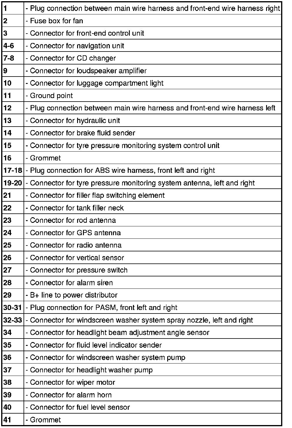 -> The main wire harness contains all airbag lines, antenna lines and optical waveguides.