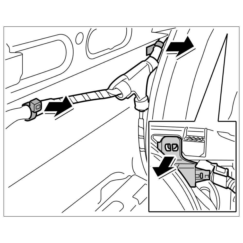 12. Unclip the main wire harness in the area of the rear left spring strut.
