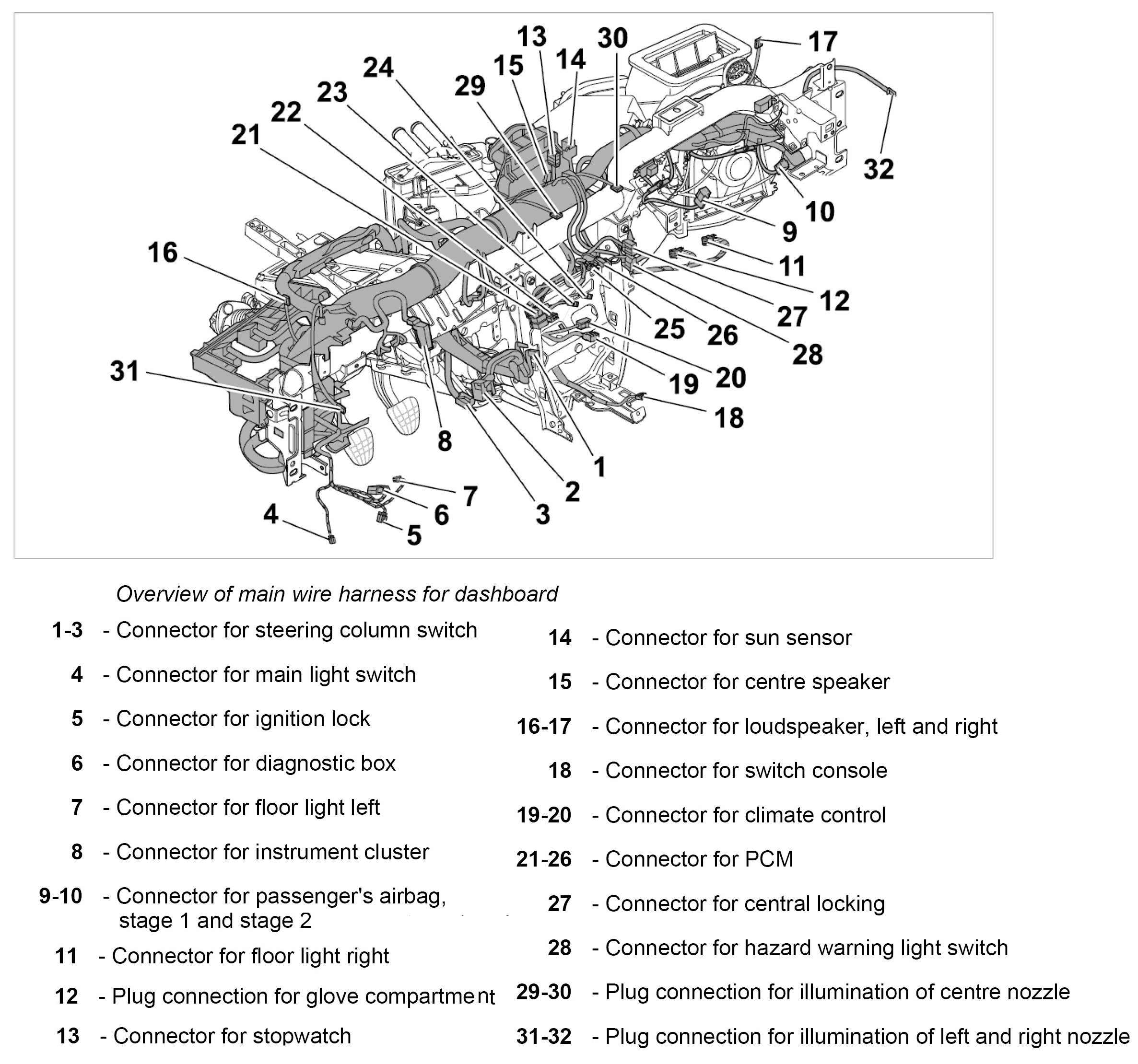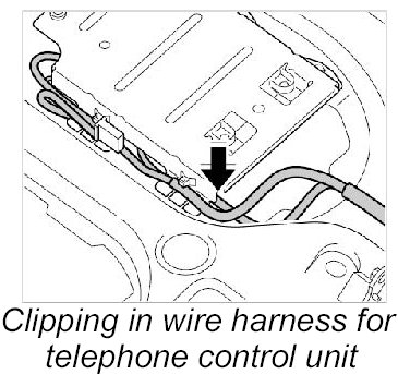 24. 1. Clip in wire harness for telephone control unit.