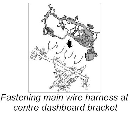1. Fasten main wire harness at centre dashboard bracket.