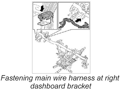 2. Fasten main wire harness at right dashboard bracket.